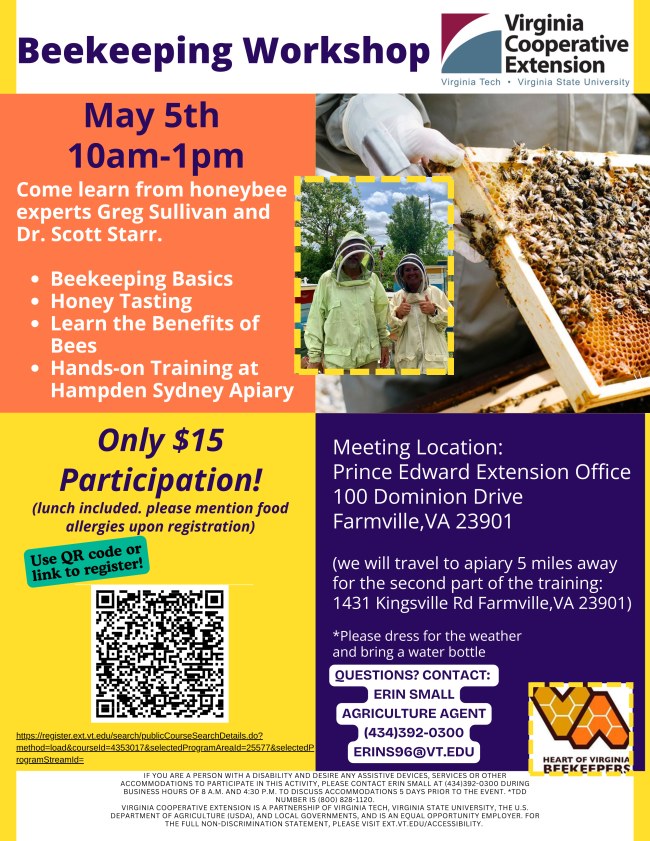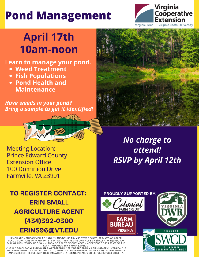 Prince Edward VCE: Erin Small, Prince Edward Extension Agent, during business hours at 434-392-0300.